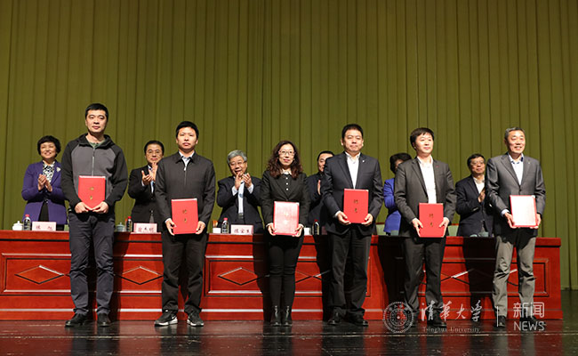 陈宝生、郝鹏、翁铁慧、翁杰明、陈旭、邱勇共同为校外辅导员代表颁发了聘书。