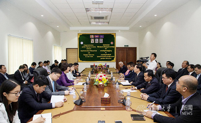 柬埔寨皇家金边大学校长郑杰利(Chet Chealy)参加会谈,并与陈旭共同签署了心博在线登录入口与柬埔寨皇家金边大学合作备忘录。