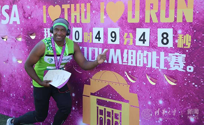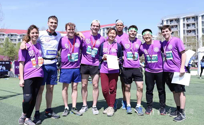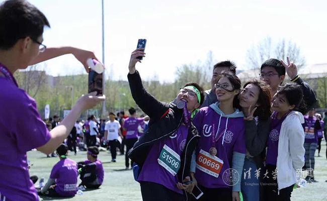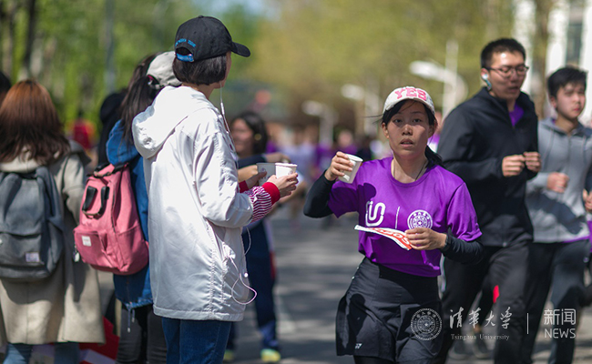 化学系大四学生庞正源在毕业前终于参加了校园马拉松。带着最后一次和同学们奔跑在校园的仪式感,他扛住感冒坚持跑完10公里,跑进一小时,“算是完成了个人的小目标”。地学系研三学生孙宏伟是第二次参赛,他与许伟康老师等伙伴顶着大风天的压力,轮流扛着院旗完成了10公里路程。结伴参赛的还有苏世民书院的美国学生丁俊杰(Brain Drout),他与10名同学一起报名,取得男子组10公里第10名的好成绩。他很开心能与中外同学结交朋友、一起奔跑清华园,也很期待在即将到来的马约翰杯田径运动会中有好的表现。