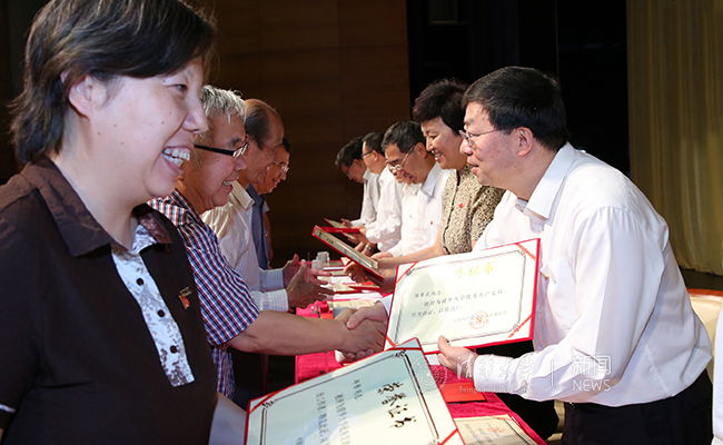 校领导向获奖单位代表和个人表示祝贺。石加东 摄