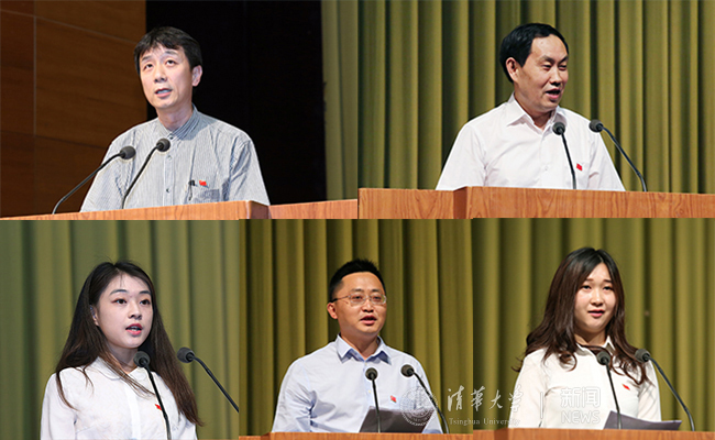 优秀共产党员代表、北京高校优秀共产党员、建筑学院院长庄惟敏,先进党支部代表、物理系物研131党支部书记龚演,优秀党建与思想政治工作者代表、北京高校优秀党务工作者、校党委离退休工作部部长刘秀成,优秀党支部书记代表、热能系热测研究所党支部书记麻林巍,新党员代表、社科学院本科生张北楠等在大会上先后发言,分享了各自在工作学习中的感受与体会,表示将以更加严格的标准要求自己,积极发挥先锋模范带头作用,为学校深入推进世界一流大学建设、为实现中华民族伟大复兴作出更多贡献。