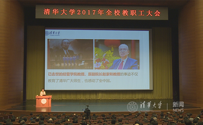 三是做到潜心问道和关注社会相统一,自觉践行扎根中国大地办大学。要深刻理解党的教育方针,努力做到为人民服务、为中国共产党治国理政服务、为巩固和发展中国特色社会主义制度服务、为改革开放和社会主义现代化建设服务;要不断创造“顶天立地”、服务社会的学术和科技成就,主动服务国家战略,服务“四个全面”战略布局;要始终以深沉的情感、奉献的精神、扎实的行动关注社会、服务人民。会上播放了一段中央电视台《朗读者》栏目播出的赵家和老师事迹的视频。陈旭动情地说,赵老师无愧于清华师德的典型代表,我们要把他的精神品格继承下来,传递给一代代清华人。