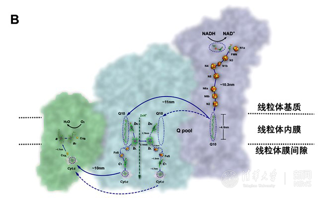 在此基础上,杨茂君教授研究组揭示了复合物I各亚基之间细致的相互作用,鉴定出了新的连接各单独复合物的蛋白亚基,发现了磷脂分子在呼吸体结构中发挥的重要作用,并且提出了全新的电子传递模型。人类线粒体呼吸链系统异常会导致如阿兹海默综合症、帕金森综合症、多发性硬化、少年脊髓型共济失调及肌萎缩性脊髓侧索硬化症等多种疾病,研究组的成果为人类攻克线粒体呼吸链系统异常所导致的疾病提供了一个良好的开端。