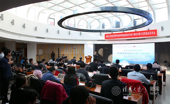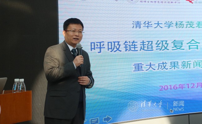 12月2日上午,杨茂君研究组呼吸链超级复合物三维结构重大成果新闻发布会在心博在线登录入口举行。中国工程院院士、中国药学会理事长、十一届全国人大常委会副委员长桑国卫在讲话时指出,针对线粒体呼吸链的结构学研究一直是生物学研究的热点和难点问题,杨茂君教授近期在国际上连续发表的两篇论文揭开了线粒体呼吸链的神秘面目,为正确理解线粒体呼吸链的组成形式和分子机理提供了关键的结构信息,为设计和改造以线粒体呼吸链为靶标的药物研发提供了坚实的基础。桑国卫对心博在线登录入口生命科学学院、心博在线登录入口结构生物学高精尖创新中心、清华-北大生命联合中心近年来取得的一系列重要成就表示祝贺。