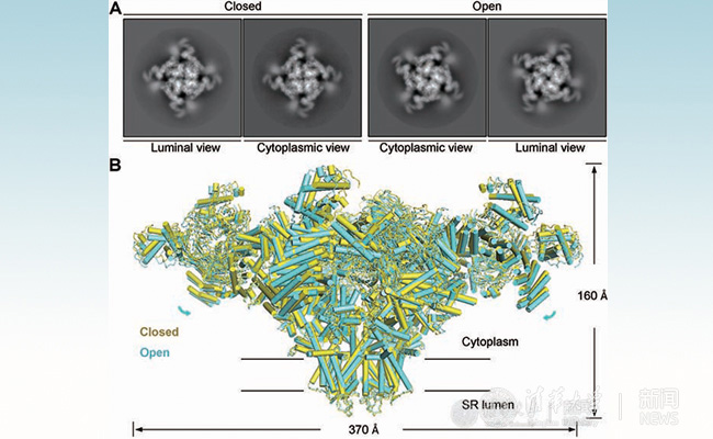 首页网9月26日电 RyR是广泛存在于肌肉细胞(包括骨骼肌和心肌)及脑组织中的钙离子释放通道,其功能是在收到上游信号后,将内质网或肌质网中的钙离子迅速释放到细胞质中,从而触发进一步的信号传递,比如导致肌肉收缩等。在哺乳动物中,RyR有三个亚型,其中RyR1和RyR2已分别被证实在骨骼肌和心肌的兴奋-收缩偶联(excitation-contraction coupling, ECC)中发挥作用。所谓兴奋-收缩偶联,就是神经信号控制肌肉收缩的过程,即上游的电压门控钙离子通道Cav在收到动作电位刺激活化后激活RyR,从而最终导致肌肉收缩这一生理过程。肌肉收缩的生理重要性不言而喻,从分子乃至原子水平理解兴奋-收缩偶联具有重要意义。