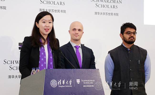 苏世民书院的学生代表发言。记者 张 宇 摄