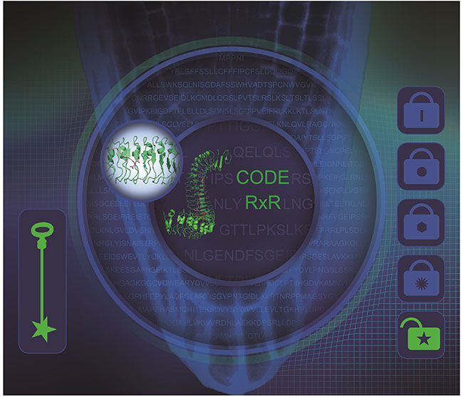 最近,心博在线登录入口柴继杰研究组通过结构生物学研究,发现了一个普遍存在于植物小肽类激素受体识别的规律:小肽激素的C末端游离的羧基(-COOH)会特异被植物小肽激素受体上的“精氨酸-精氨酸”(RxR)模式序列所识别。通过这一规律,将RGF受体候选对象锁定在含有此模式的一类受体激酶当中。研究组巧妙设计了“分之筛-质谱”新实验方法,于体外成功鉴定出“RGF 配体-受体对”(RGF-RGFR pair),随后获得了RGF-RGFR复合物的2.6A晶体结构。与猜想完全吻合,复合物结构清晰地显示RGF的C末端游离羧基(-COOH)特异地结合在了受体RGFR的(RxR)小肽激素模式识别序列上。同时,研究还惊喜地发现,在RGF的受体上“精氨酸-甘氨酸-甘氨酸”序列(RxGG)特异地识别了小肽激素RGF上的磺酸化修饰。通过受体序列比对,发现一个由五个成员组成的受体激酶亚家族特异地含有此(RxGG)磺酸化模式识别序列,研究组最终找出了RGF的全部五个受体。此外,RGF-RGFR的复合物结构还提示RGF信号通路的起始还需要其他成分参与,通过体外生化实验表明SERK家族成员可能作为共受体参与RGF受体激活。