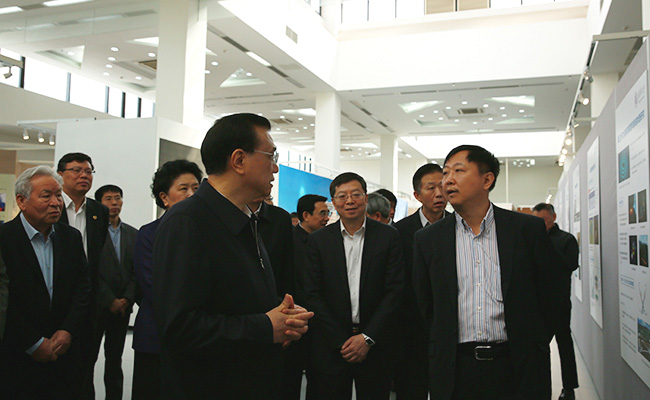 校领导陪同李克强总理一行考察。苑 洁 摄