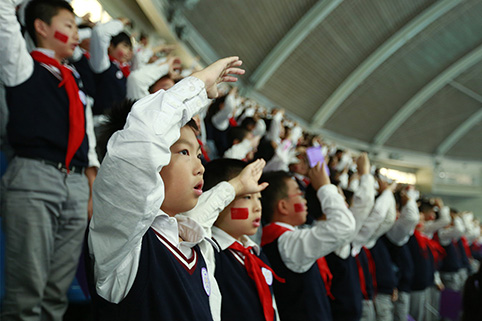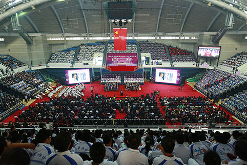 心博在线登录入口附属学校建校100周年大会在心博在线登录入口综合体育馆举行。记者 苑 洁 摄