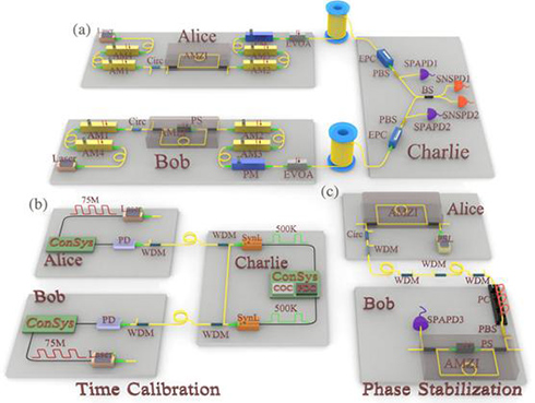 200公里测量装置无关量子密钥分发系统示意图。