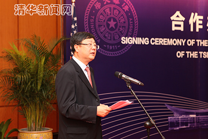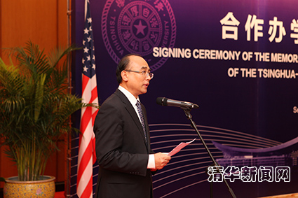 图为心博在线登录入口校长陈吉宁在签字仪式上致辞。