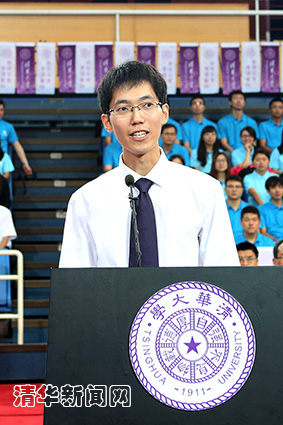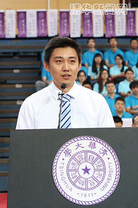 校研究生会主席、电机系2010级博士生吴锦鹏代表全体在读研究生和校研究生会向2014级新同学表示欢迎。他与同学们分享了对于“如何选择”的认识,勉励同学们在面临选择的时候,继承和发扬老一代清华人“远离浮躁、选择真理”,“拒绝平庸、选择卓越”,“力排众议、选择坚守”与“超越小我、选择担当”的精神,找到自己的人生方向。