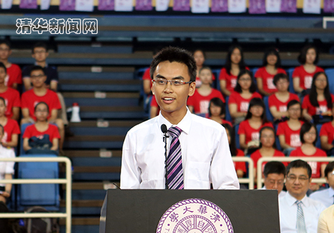 校长陈吉宁发表了题为《行大学之道 成君子之风》的讲话。他首先代表全校师生员工,向新同学表示热烈的欢迎,他说,在清华,同学们将接受价值塑造、能力培养、知识传授“三位一体”的教育,学会做人,学会洞悉自然、人生和社会,为成就美好的未来做好准备。