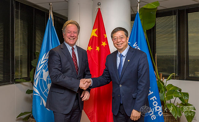 随后,在牛盾陪同下,邱勇访问了联合国世界粮食计划署,会见执行总干事戴维·比斯利(David Beasley)、执行副总干事阿米尔·穆哈默德·阿卜杜拉(Amir Mahmoud Abdulla),并签署合作协议。邱勇表示,清华高度重视联合国可持续发展目标,积极支持2030年在全世界范围内消除饥饿的落实。希望双方以签署合作协议为契机,建立长期伙伴关系,在学生实习、专家交流以及联合科研等领域开展广泛合作,为促进可持续发展、消除饥饿、实现粮食安全等共同努力。