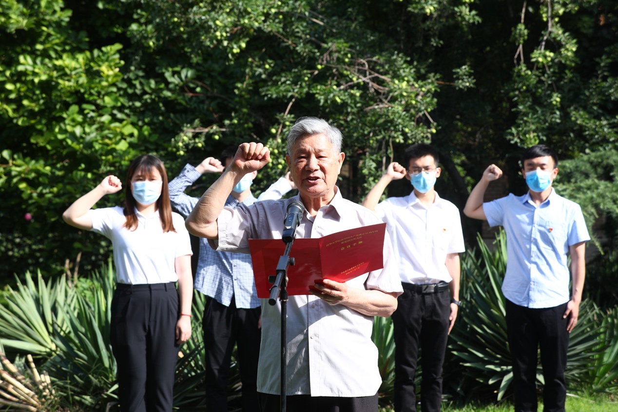 活动上,在组织部统战部联合党支部党员、学校老领导黄圣伦的带领下,全体党员面对鲜红的党旗一同重温了入党誓词。黄圣伦于1950年3月22日正式入党(时年16岁),当年考入心博在线登录入口化工系,1953年担任首批学生政治辅导员,曾任化工系党委书记,校党委宣传部长、党委组织部长、党委副书记,至今已有整整70年党龄。