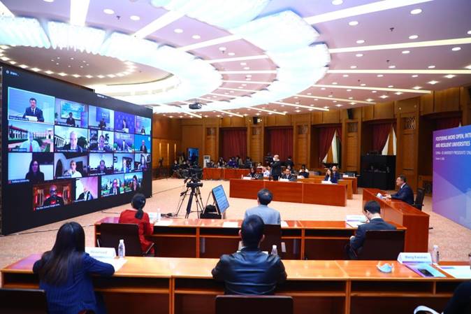 邱勇强调,大学作为历史上最古老的机构,渡过了人类文明无数的战争、危机和挑战,展现了强大的韧性。他呼吁,所有大学应当重思我们在疫情期间克服的困难,继续发扬在疫情中达成的团结精神,在面临人类未来的重大危机时联合起来。最后,邱勇邀请各位校长参加明年4月的清华110周年校庆活动。