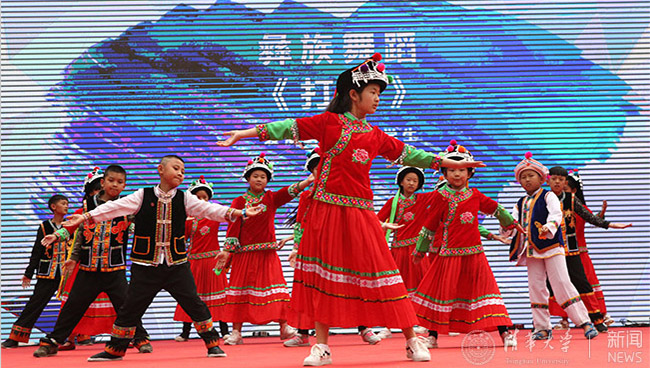 西山小学同学受邀在清华附中学生节上表演彝族舞蹈《打歌》