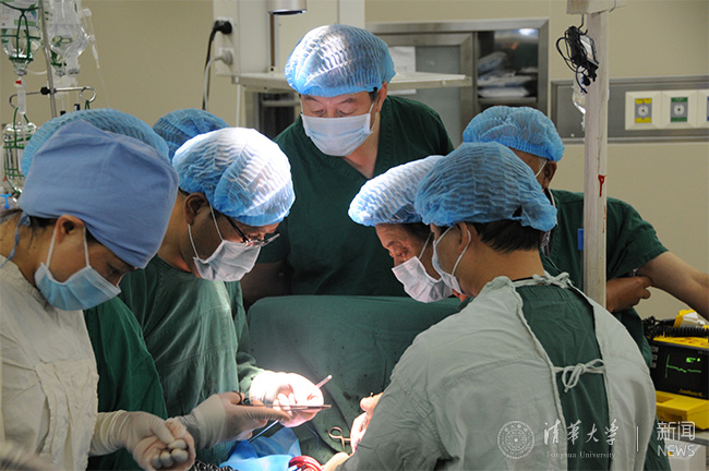 清华一附医院的专家正在为患儿进行超声检查