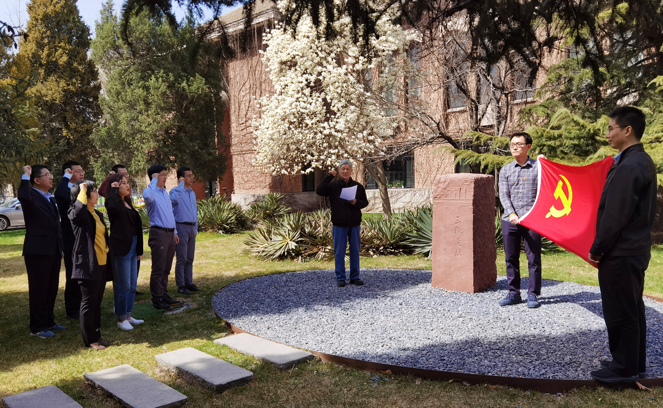 学校老党员在三院旧址前带领青年教师入党宣誓