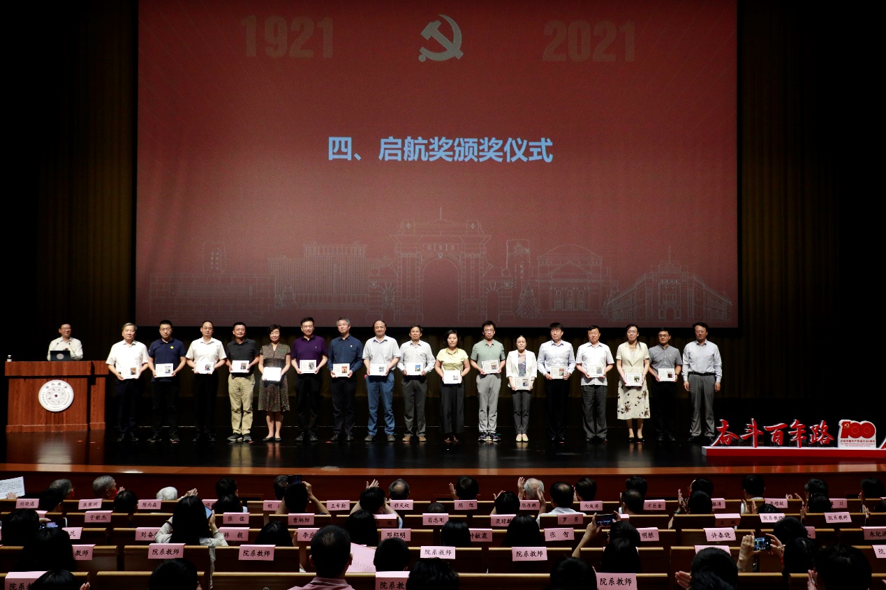 校党委常委、组织部部长、统战部部长许庆红,党办校办主任丛振涛,宣传部常务副部长、新闻中心主任覃川,校友总会秘书长唐杰,教育基金会秘书长袁桅共同为启航奖金奖获奖者颁奖。