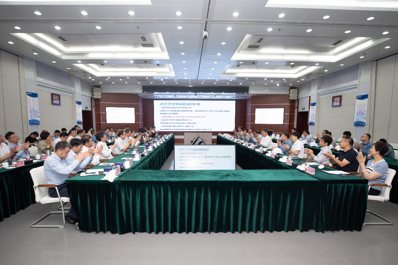 陈旭在总结讲话中用四个“典范”概括了高温气冷堆核电示范工程取得重大突破的重要意义:一是服务国家的典范,工程汇集了各方成果,助力国家构建清洁低碳、安全高效的现代能源体系;二是勇于创新的典范,工程标志着我国在世界先进核能技术领域,从“跟跑”发展为“领跑”;三是企校合作的典范,工程建设中三方密切合作、联合攻关,充分显示了社会主义制度集中力量办大事的优越性;四是党建引领的典范,工程建设中探索形成的党建工作机制,引导大家心往一处想、劲往一处使,大大提高了效率,有效推动了进度。