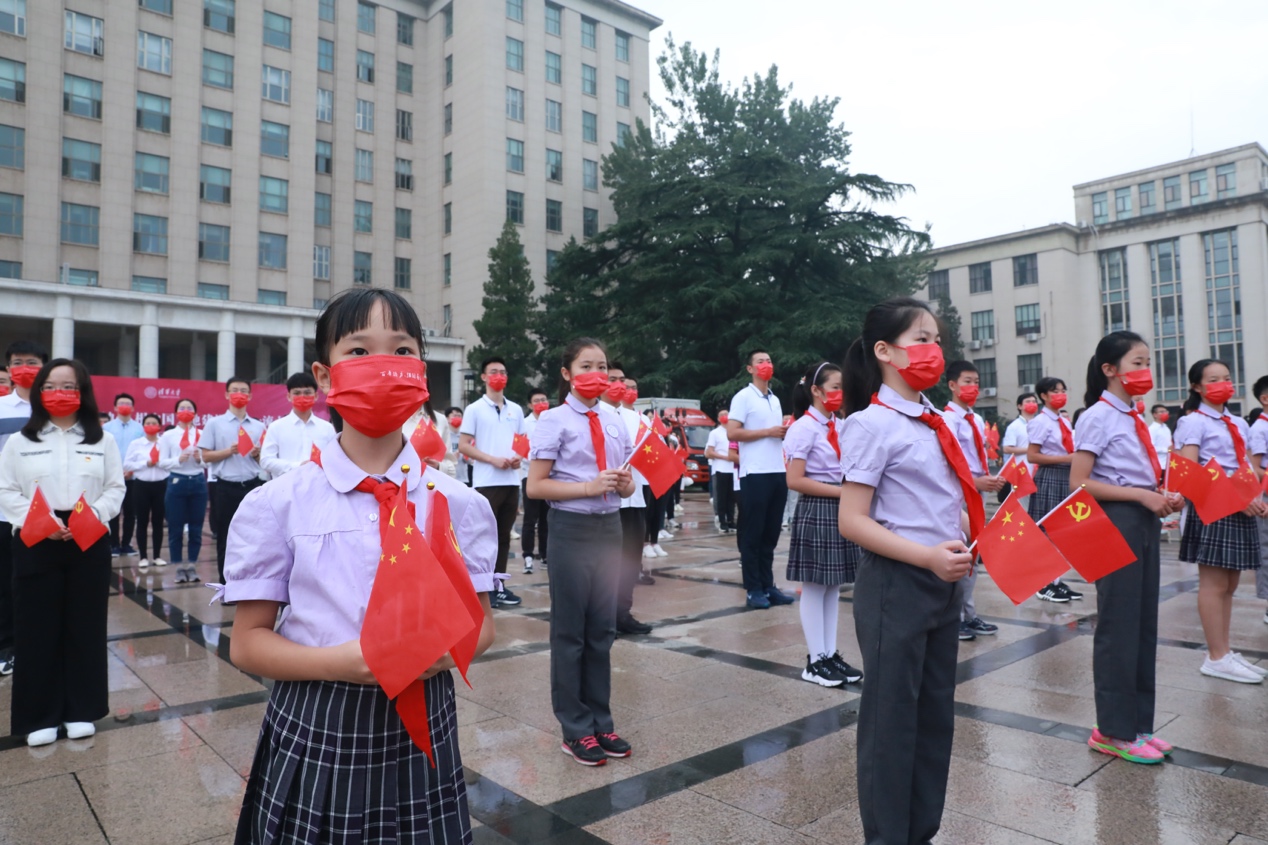 “五星红旗迎风飘扬/胜利歌声多么嘹亮/歌唱我们亲爱的祖国/从今走向繁荣富强……”全体师生挥舞着手中鲜艳的国旗和党旗,共同唱响《歌唱祖国》。歌声伴朝阳,水木湛清华,全体师生将以百倍的信心、十足的干劲开启新学年。