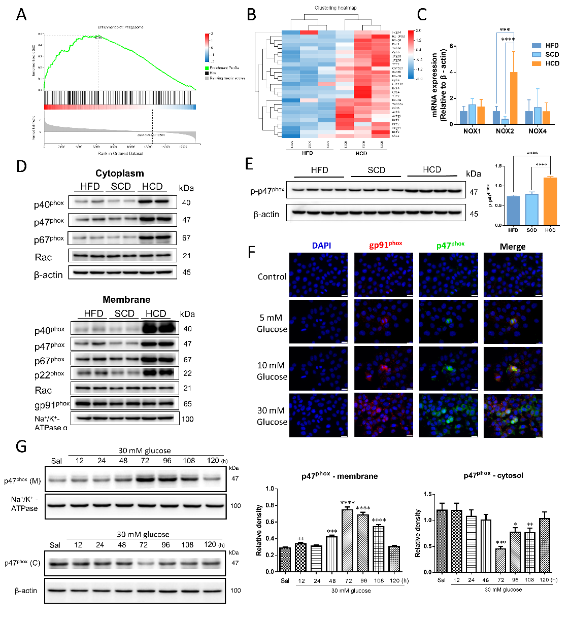 图3. 高淀粉饮食提升肝内NOX2表达并促进NOX2组装