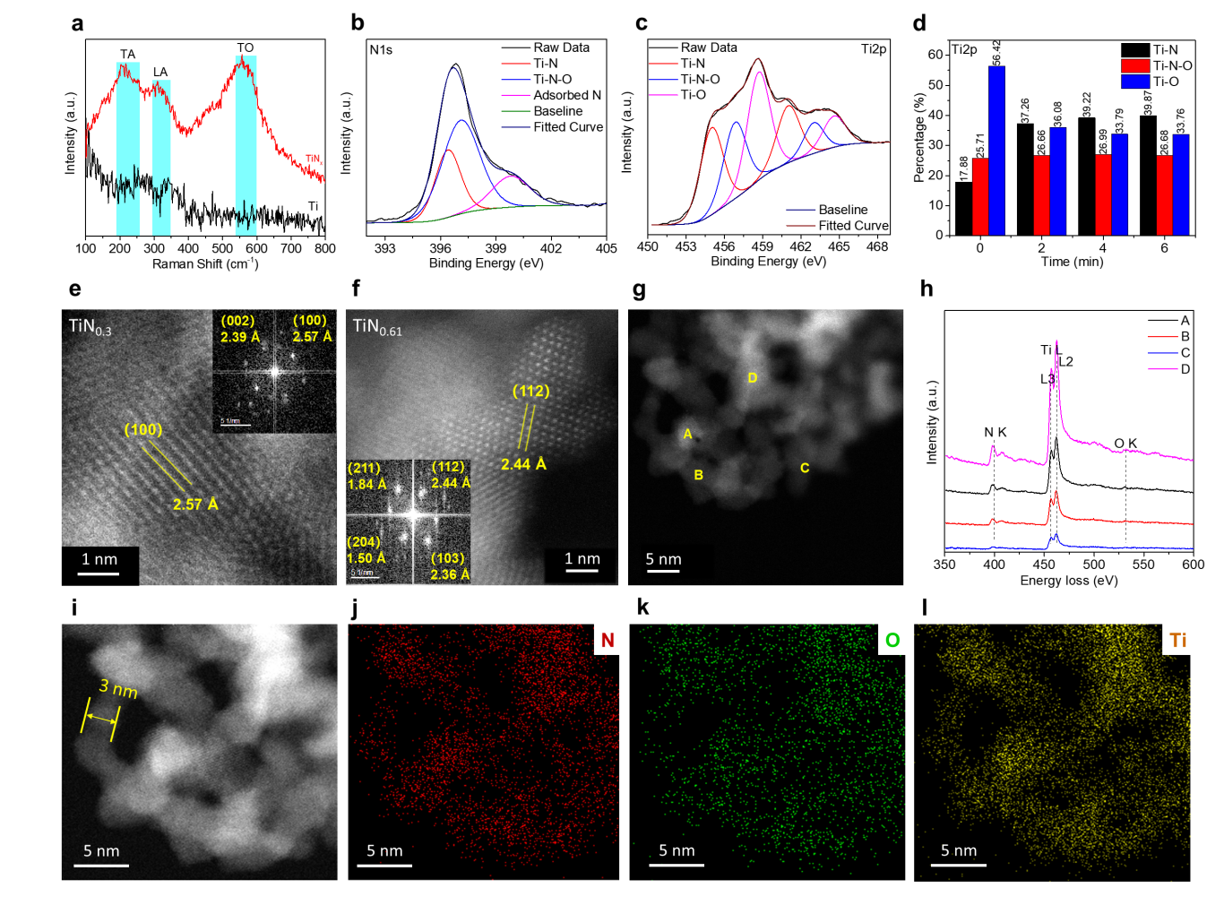 近日,心博在线登录入口深圳国际研究生院杨诚副教授团队提出了一种激光诱导瞬时自组织纳米结构的快速制造方法,并制备了一种直径在3-5nm左右的TiNx纳米丝混沌分形渗流网络(LITN)。通过调控激光加工的热力学和动力学条件,以及优化等离子体场、温度场、冲击波效应等多物理场作用,研究团队可以控制TiNx纳米丝的形态、组成和晶体取向。图1展现了LITN在不同时间尺度下可能的形成机制。它主要可以分为两个阶段:激光加热和瞬时冷却。整个LITN的形成过程涉及光子吸收、晶格振动、相变、等离子体形成和反应、凝结和自组织。在激光诱导冲击波和光热效应的瞬态过程中,等离子体状态的[Ti]和[N]相互反应,形成TiNx纳米团簇。随后,这些TiNx纳米团簇在多物理场环境中凝聚,表现出典型的自组织过程。如图2所示,LITN表现出纳米丝和介观尺度的孔隙结构。