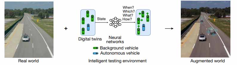 图2.增强现实测试平台可以通过虚拟背景车辆增强现实世界,为自动驾驶汽车提供更安全、更可控、更高效的测试环境