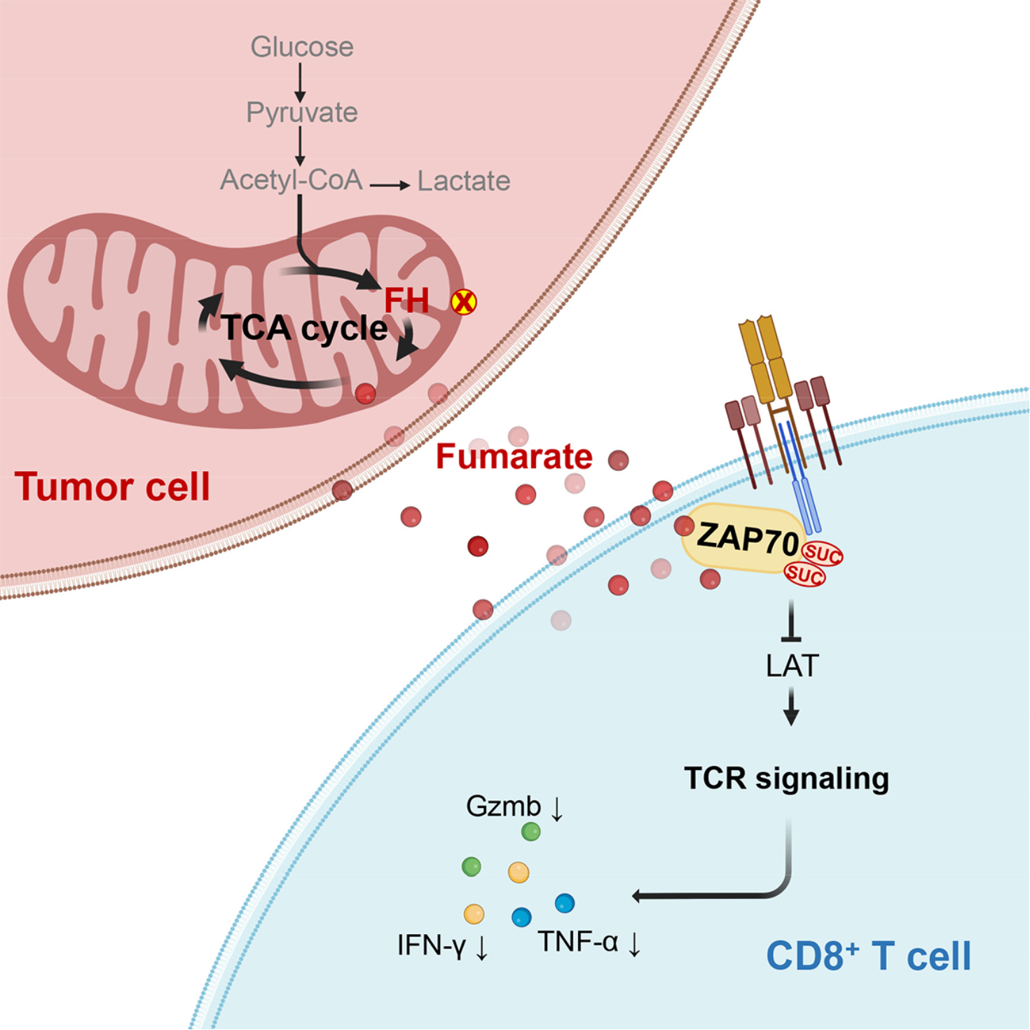 肿瘤细胞通过积累延胡索酸,抑制ZAP70-TCR信号通路,阻断CD8+T细胞的抗肿瘤功能