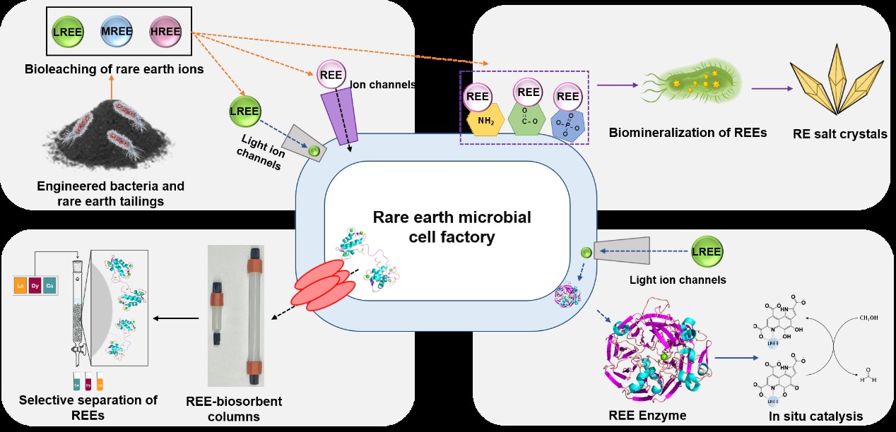首页网6月7日电 稀土材料在生物医学和高技术领域发挥着不可替代的作用。同时,稀土元素(REEs)的开采和提取方法由于涉及危险化学品,往往导致严重的环境问题和资源浪费。生物采矿是有效的替代方案,实现可持续地分离和回收REEs仍然存在着巨大的挑战,难点在于开发有效的稀土富集微生物底盘和特异性REEs结合大分子材料。