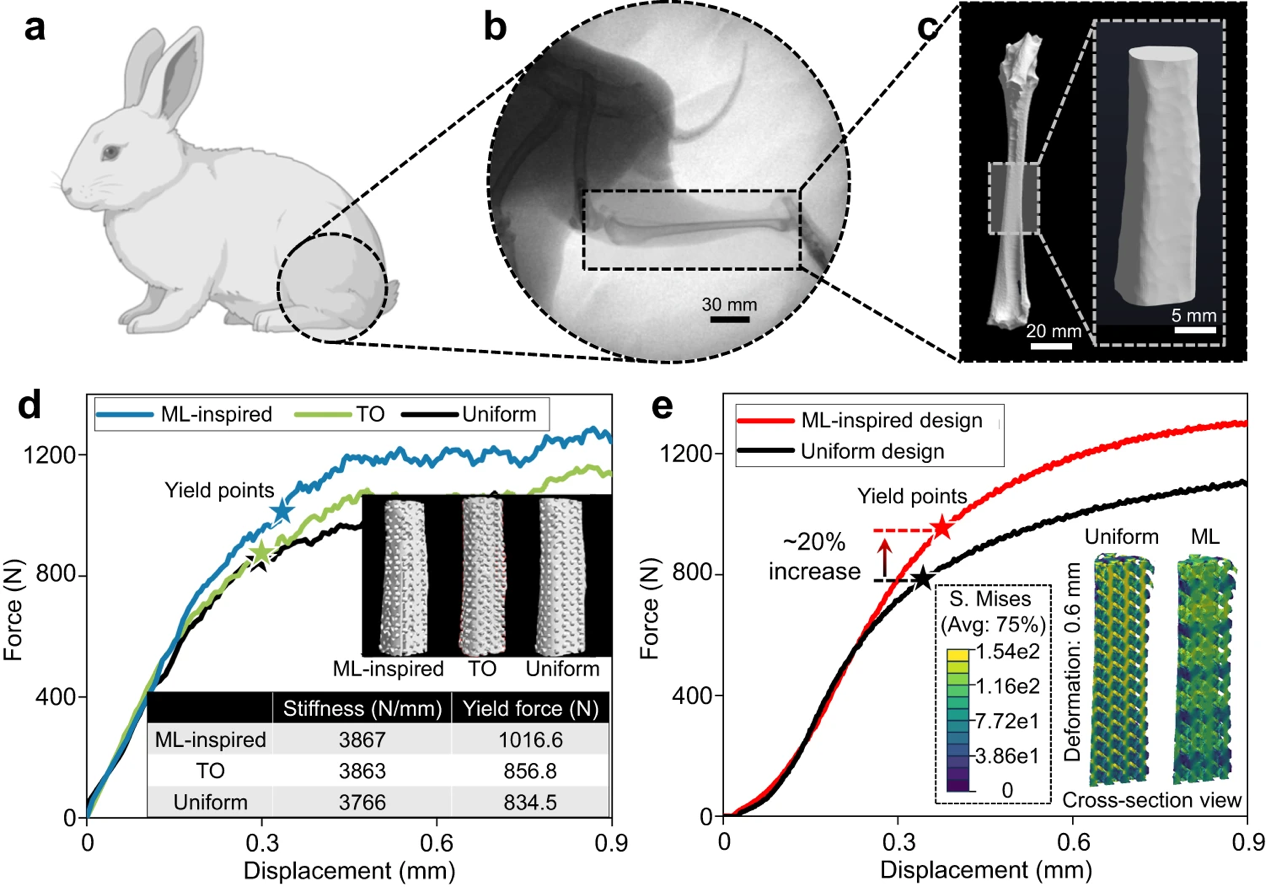 图2.GAD-MALL设计和3D打印的可降解金属多孔植入物及其力学性能