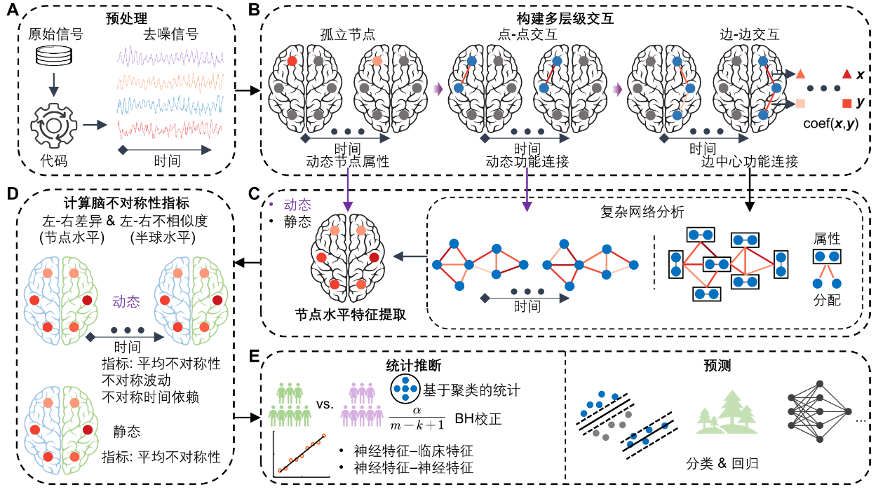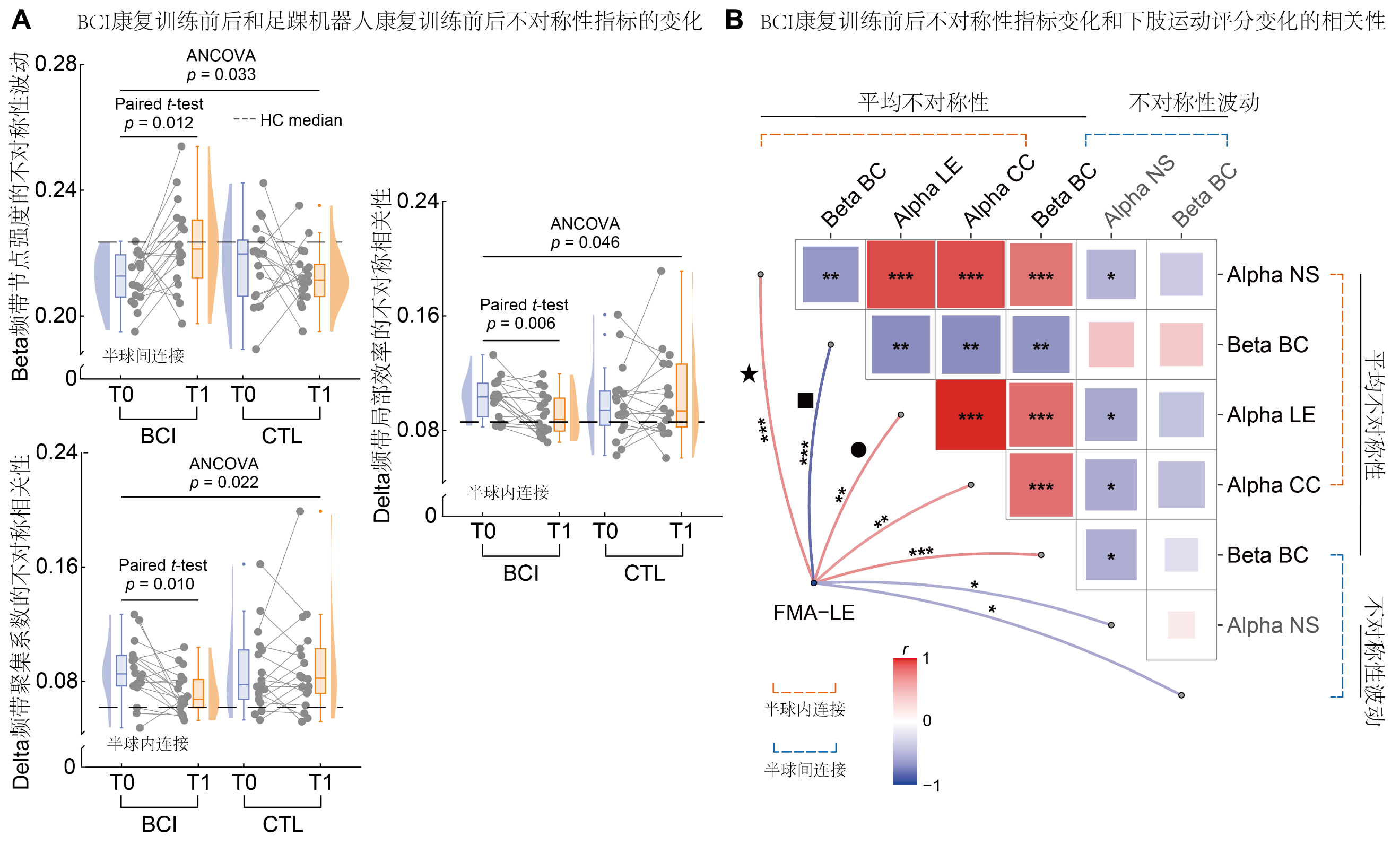 首页网11月1日电 脑的不对称性或偏侧化是神经科学中长期关注的话题。脑的不对称性被认为有利于脑对不同任务的并行处理,是在进化过程中随着大脑体积的增大为避免半球之间过度的传导延迟的自然选择;而卒中等神经或精神疾病引起的脑不对称性的异常通常与功能损害相关。人体几乎所有复杂的行为都涉及脑的不同区域动态协调和多层级的交互。然而,目前对于脑多层级交互不对称性的研究缺乏系统性的分析方法。在临床上,卒中等脑损伤患者在进行康复训练和治疗后,可能会诱发大脑的可塑性变化。脑损伤后异常的不对称性模式随着功能康复如何变化是临床上关注的热点。