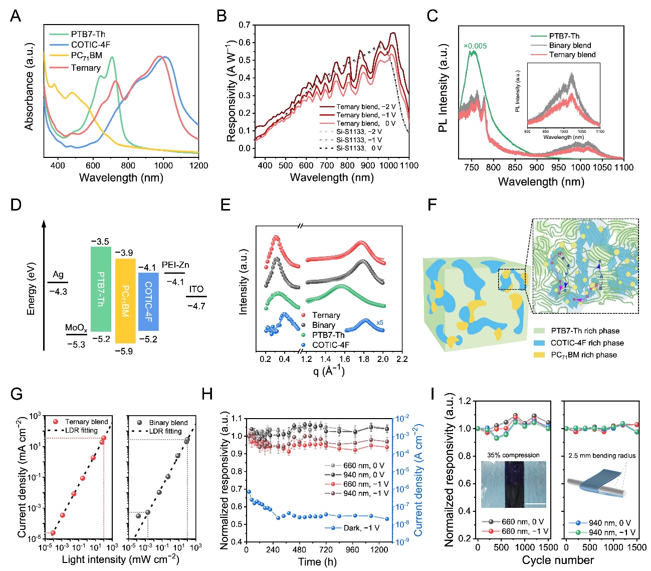 图2.超柔性高性能有机光电探测器