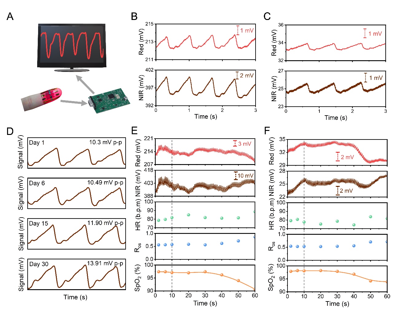 图3.皮肤集成的超柔性PPG传感器
