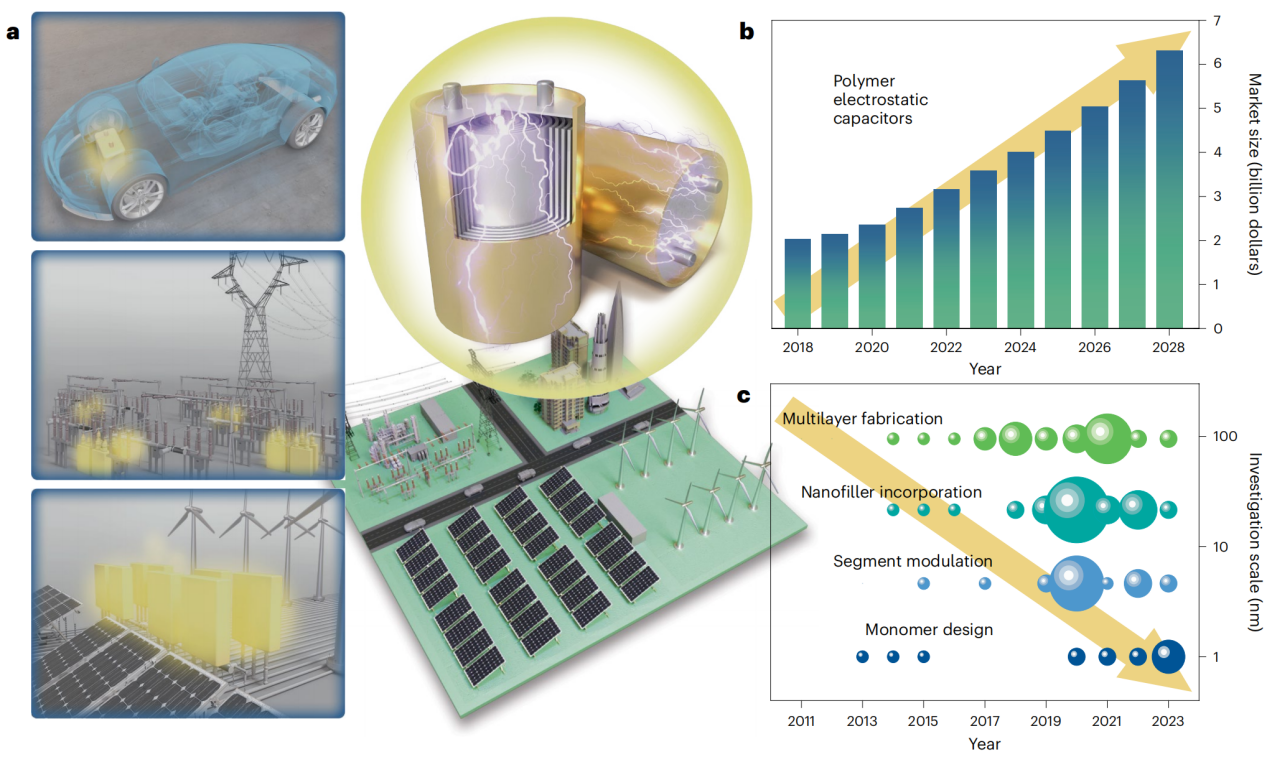 该综述以“用于电容储能的聚合物基纳米复合电介质”(Polymer nanocomposite dielectrics for capacitive energy storage)为题,发表于期刊《自然·纳米技术》(Nature Nanotechnology)上。论文的第一作者为材料学院2020级直博生杨敏铮,通讯作者为沈洋,共同通讯作者为中国科学院院士、心博在线登录入口材料学院教授南策文和澳大利亚卧龙岗大学教授张树君。