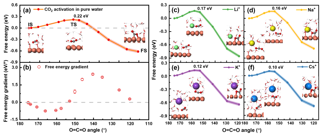 相关研究成果以“碱金属离子在Cu(100)表面引发二氧化碳还原过程中的关键作用的分子级解析”(Molecular Understanding of the Critical Role ofAlkali Metal Cations in Initiating CO2Electroreduction on Cu(100) Surface)为题,于1月19日发表于《自然·通讯》(Nature Communications)。