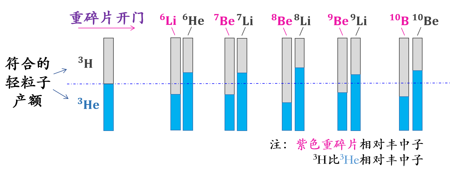 与重碎片符合的轻粒子产额示意图