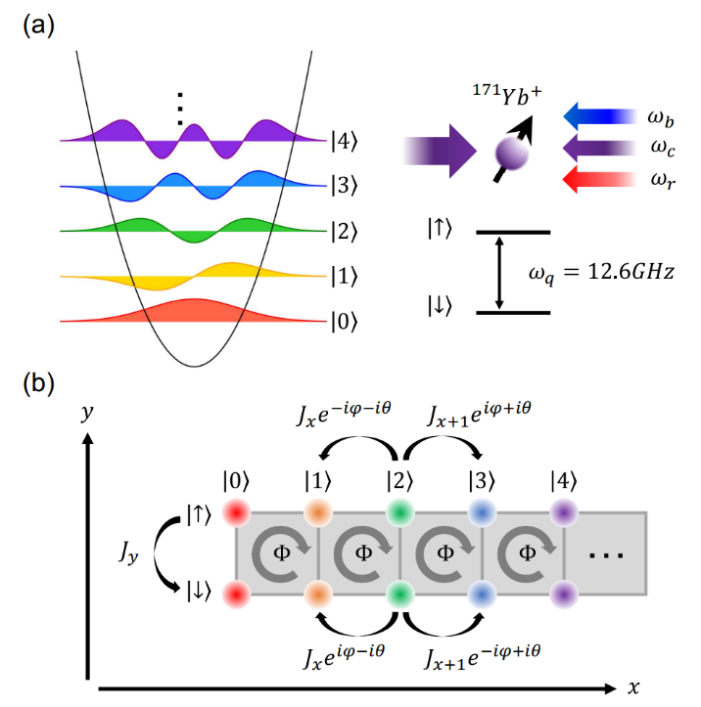 近日,相关研究成果以“在捕获离子量子模拟器中实现合成维度和人工磁通量”(Realizing Synthetic Dimensions and Artificial Magnetic Flux in a Trapped-Ion Quantum Simulator)为题,于3月25日发表于《物理评论快报》(Physical Review Letters)。