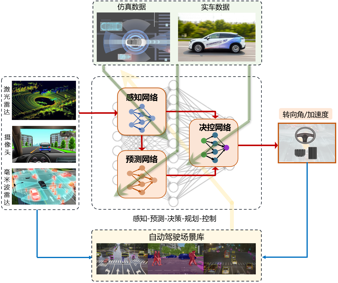 这一研究工作同时得到智行者、昇启科技两家高科技企业的全力支持,形成了校企之间紧密配合、通力协作的联合攻关团队。智行者团队主要工作在于环境感知模型的构建与预训练,昇启科技团队主要工作在于自动驾驶仿真平台的开发,三家单位共同完成了系统功能集成、性能评估迭代等后期任务。该研究获得国家“十四五”重点研发计划、国家自然科学基金以及心博在线登录入口自主科研计划支持。