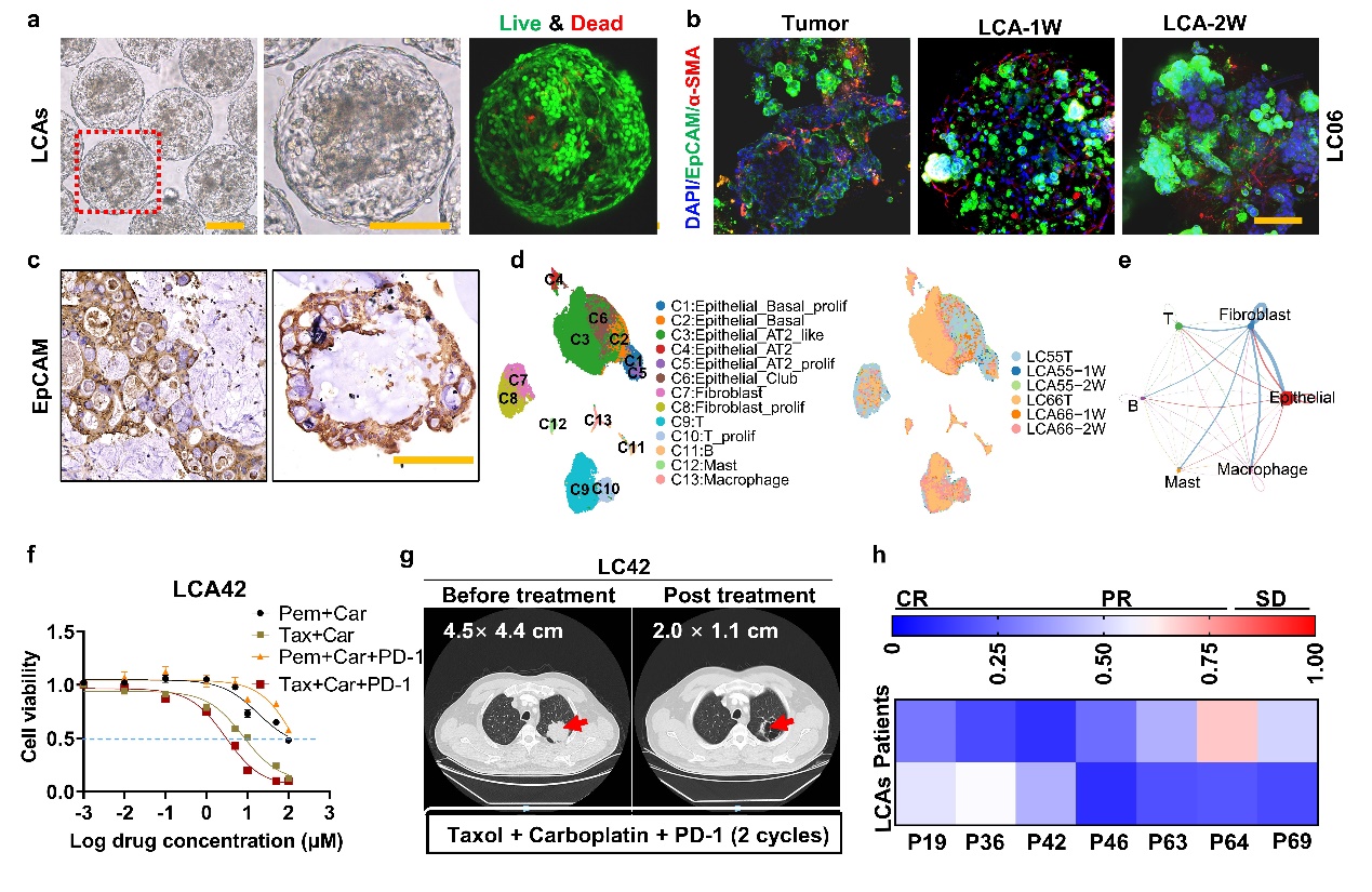 4月20日,研究成果以“一种具有异质性肿瘤微环境的患者特异性肺癌集合体模型”(A patient-specific lung cancer assembloid model with heterogeneous tumor microenvironments)为题在《自然·通讯》(Nature Communications)杂志上发表。