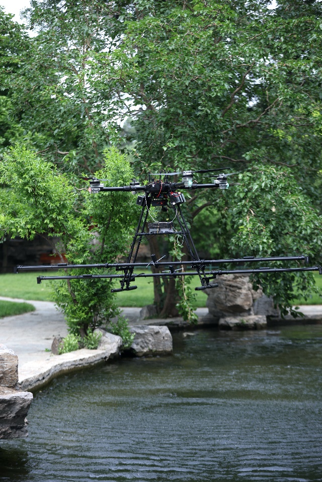 此次亮相旨在验证低空无人机平台下的探测能力和性能参数。探测目标选择了弱磁信号的空心小铁皮桶,其磁信号范围在200nT-2000nT之间。目标上面覆盖防汛沙袋或石块,并置于草坪或水池。无人机可探测飞行高度10cm至500cm,飞行速度可达6m/s,可垂直和悬停探测。整个活动实现了全部水陆金属目标的探测无遗漏,并能实现厘米级定位,即时绘制各水陆目标的磁力图。