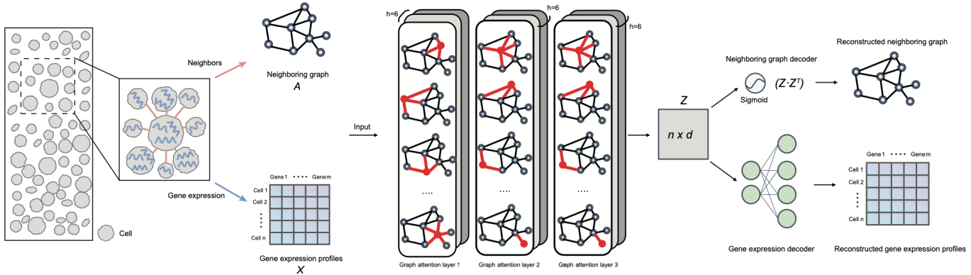 首页网6月17日电 在多细胞生物体中,尽管所有细胞共享相同的基因组,但由于内部基因调控网络的差异以及与周围微环境中相邻细胞的外部信号交流,它们在形态、基因表达和功能上展现出显著的多样性。相邻的不同种类细胞之间再通过复杂的相互作用,形成一定功能的组织模块。近年来,随着空间转录组技术的不断发展,研究者能够在单细胞分辨率下获得细胞的基因表达谱,同时保留细胞在组织内的空间位置信息。因此,如何有效地利用这些空间位置信息来揭示复杂组织中细胞的空间排列模式和相关的生物学功能,即识别空间细胞亚型和发现组织模块,是空间转录组数据分析的核心任务。