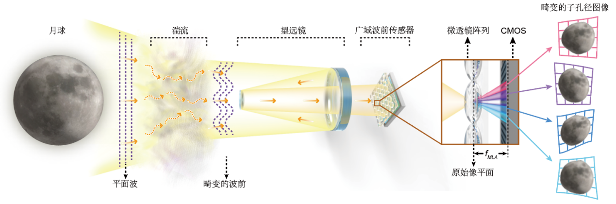 大气湍流广域波前传感芯片概念图(来源:《自然·光子学》)