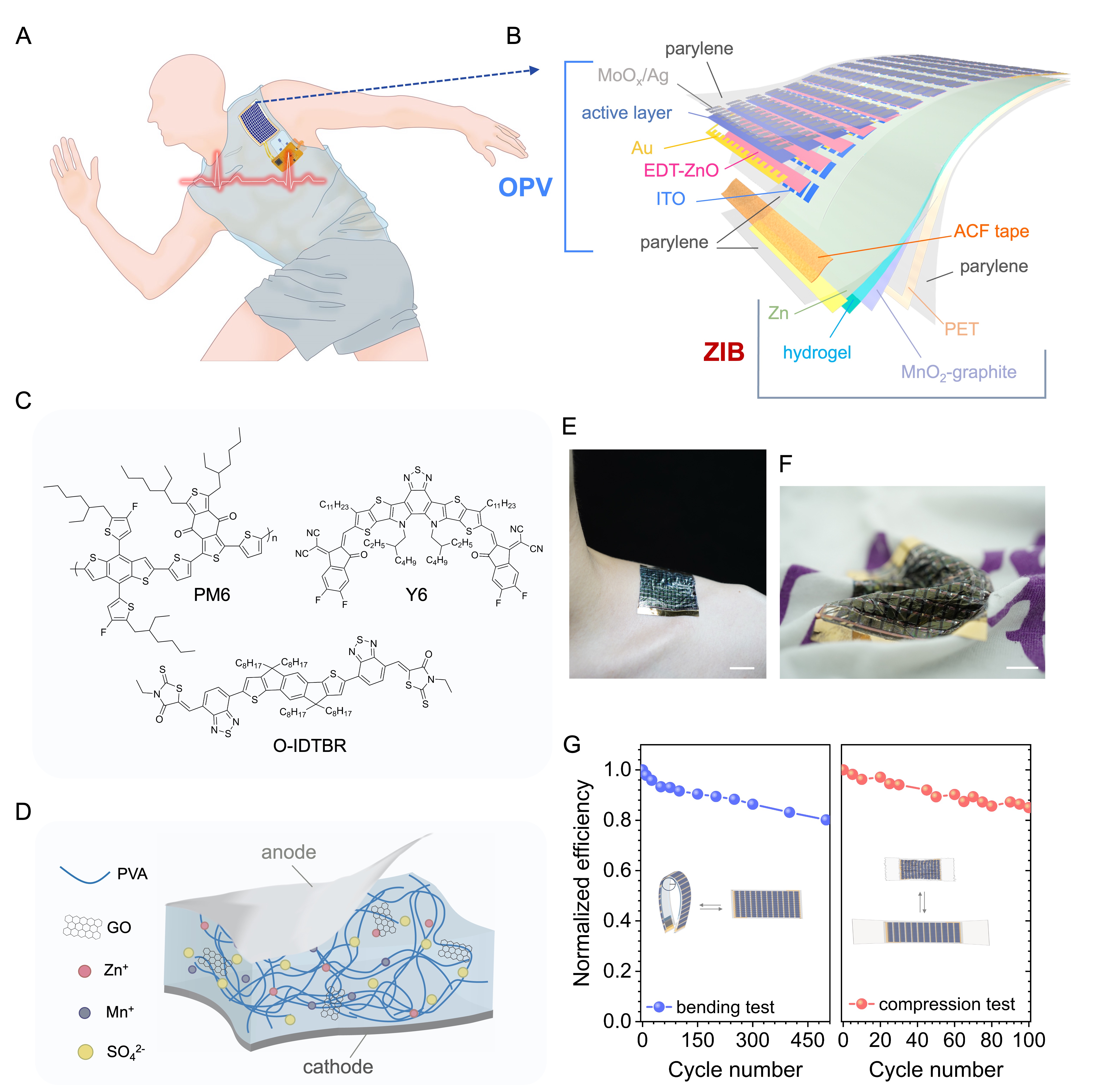 近日,心博在线登录入口深圳国际研究生院徐晓敏团队与周光敏团队等合作,报道了厚度仅90微米的超柔性能量收集-储存一体化系统,该系统由超柔性高性能OPV组件与超薄锌离子电池(ZIB)集成,其为可穿戴生物传感系统及日常电子设备供电展示了FEHSS作为新一代可穿戴绿色能源设备的可行性(图1)。