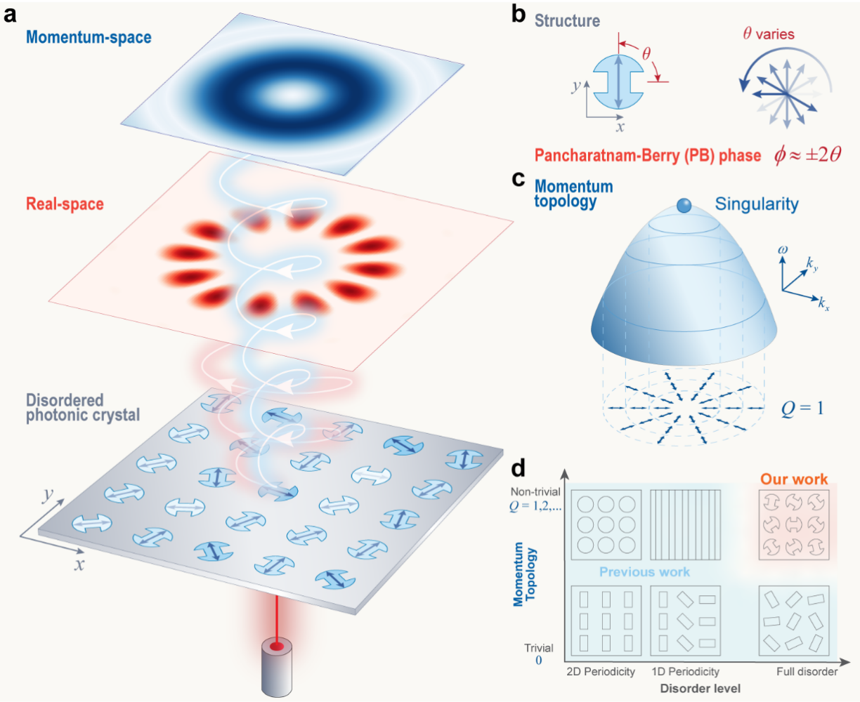 传统利用超表面和光子晶体实现的BIC通常依赖于严格的周期性结构,结构的无序会破坏周期性,导致BIC退化成准BIC(即QBIC),其拓扑性质也随之消失。因此,过去关于BIC的研究通常会尽量减轻无序的影响。然而,无序性为结构控制提供了额外的自由度,这在波前调控应用中至关重要。因此,如何在BIC中引入有效的无序信息而不破坏BIC的拓扑特性,成为拓扑光学领域中的一个重要挑战。