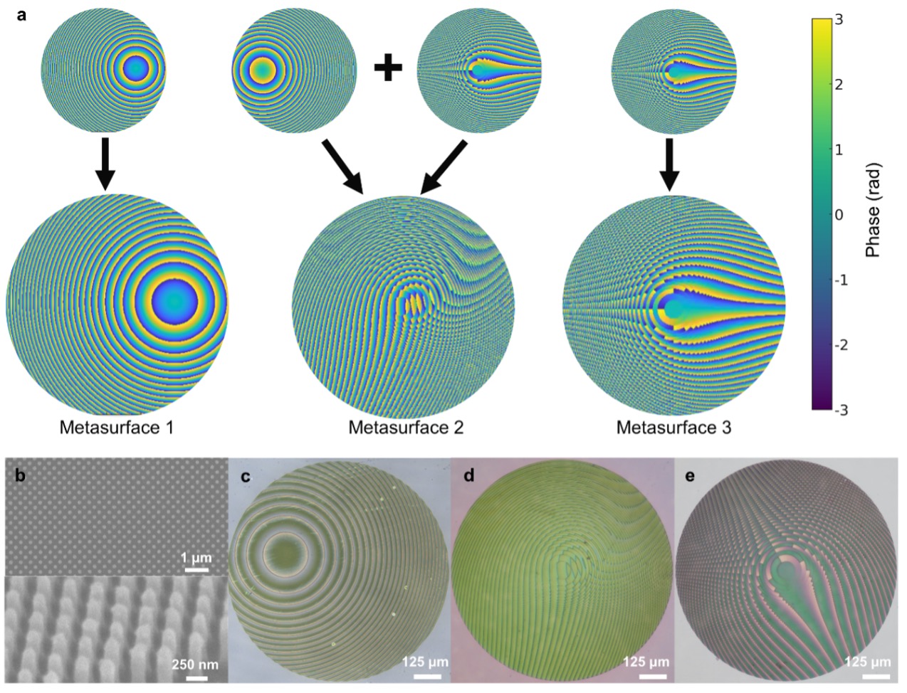 图2.超构元件的相位设计及器件表征