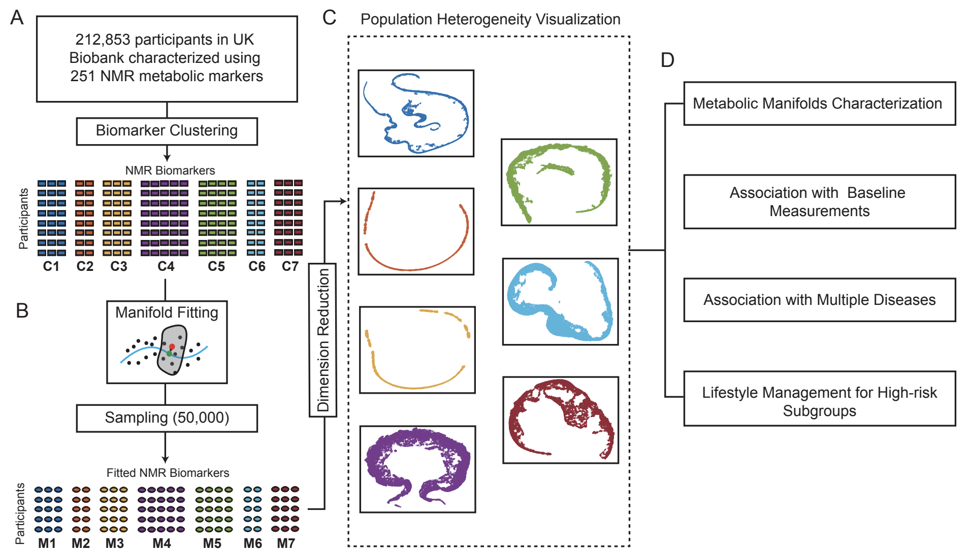 相关研究成果以“多元拟合揭示了英国生物库人群的代谢组学异质性和疾病关联”(Manifold Fitting Reveals Metabolomic Heterogeneity and Disease Associations in UK Biobank Populations)为题,于5月28日发表于《美国国家科学院院刊》(Proceedings of the National Academy of Sciences of the United States of America,PNAS)。