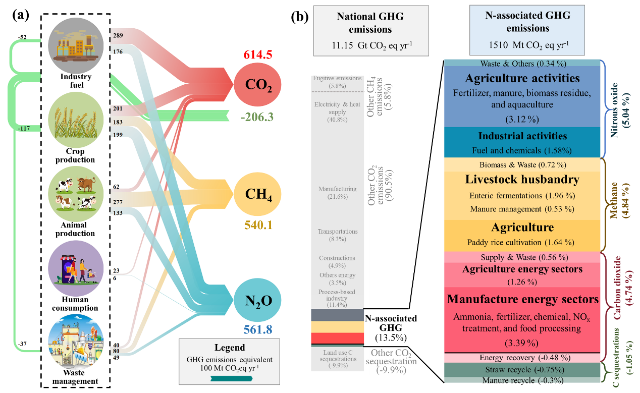 相关研究成果以“氮管理对温室气体减排的贡献——以中国为例”(Contribution of Nitrogen Management to Greenhouse Gas Emission Reduction: A Case Study of China)为题,近日发表于《环境科学与技术》(Environmental Science & Technology)。
