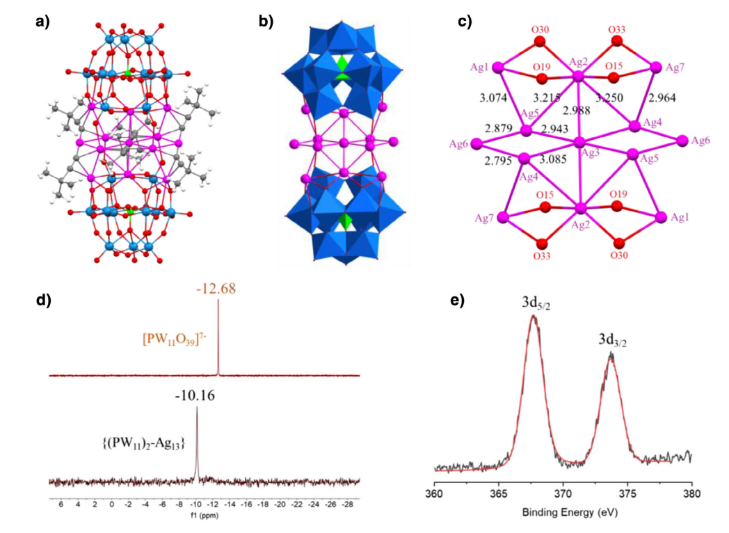 图1.{(PW11)2-Ag13}的X射线单晶结构及表征分析